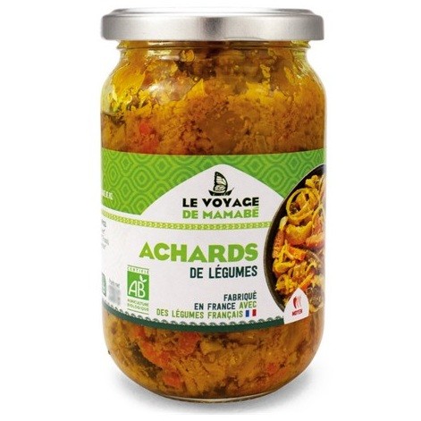 Ingrédients : Légumes : 50.5 % (Chou vert*, carotte*, chou-fleur*, oignon*, haricot vert*), huile de tournesol vierge*, vinaigre d’alcool*, gingembre*, ail*, sel, épices*(1.1%). Allergènes : voir la liste des ingrédients en gras.